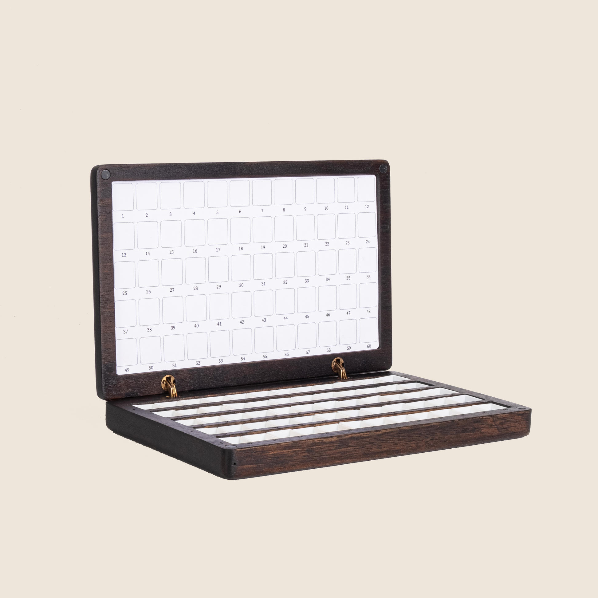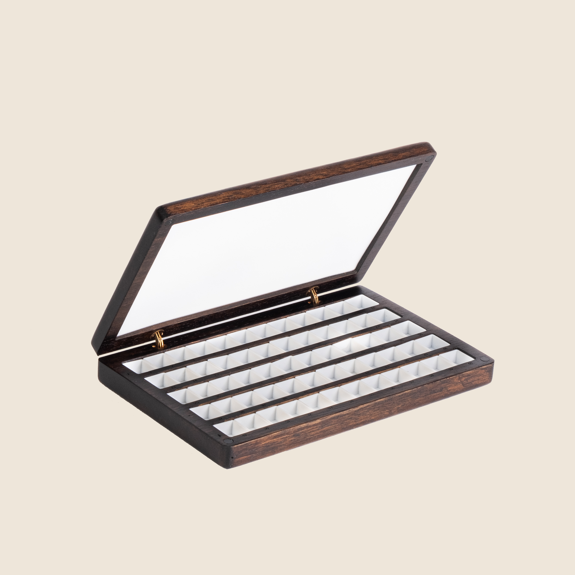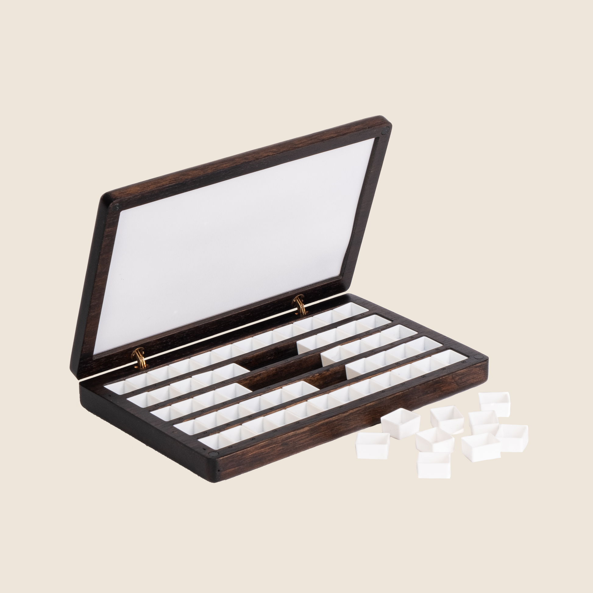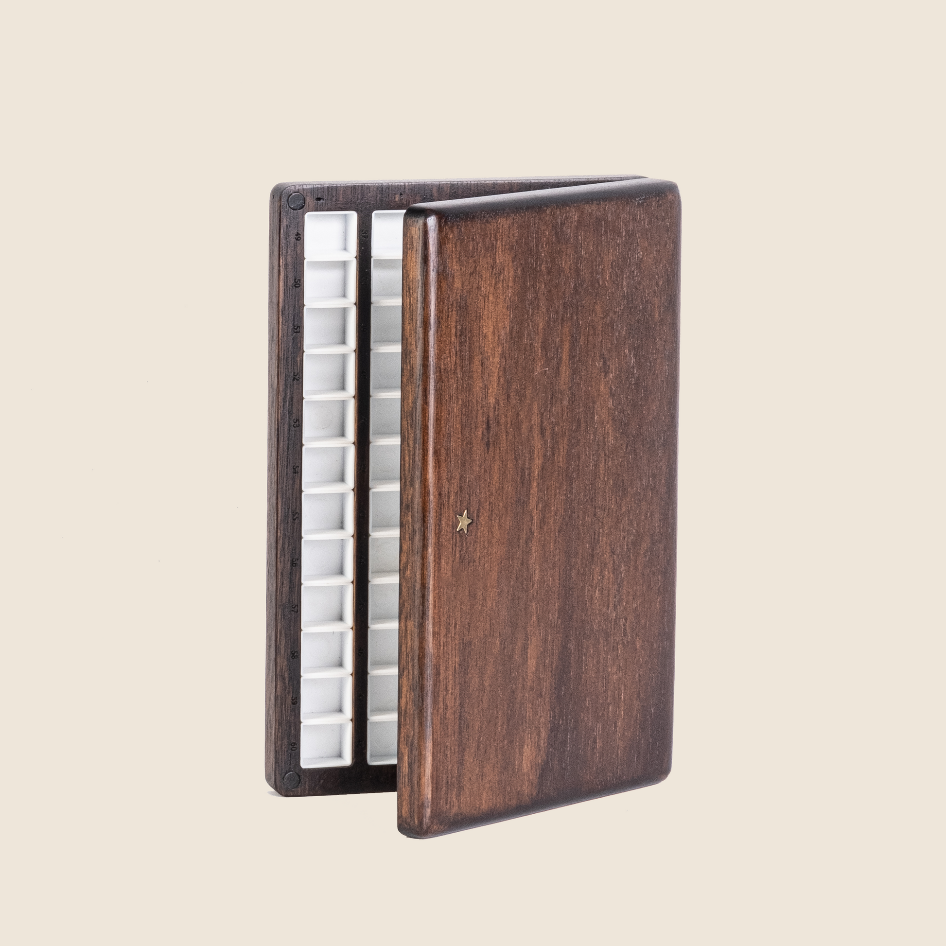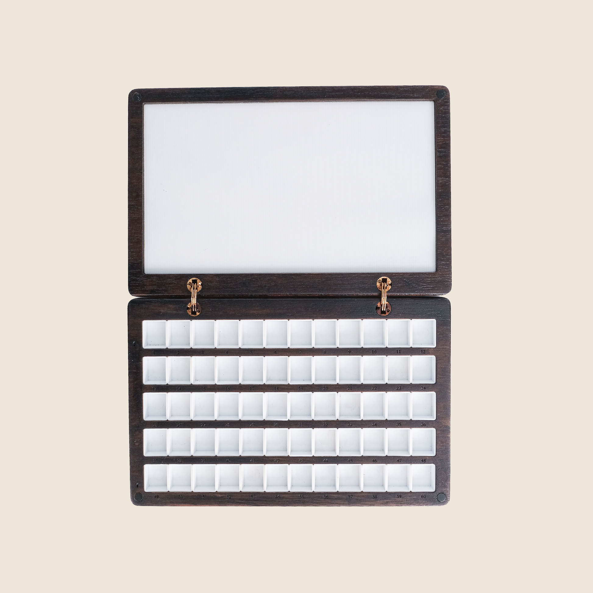 THE NEWEST PERFECT LARGE SIZE WATERCOLOR PALETTE, MADE FROM A NATURAL BLOCK OF SOLID WOOD. FITS 60 HALF PANS
